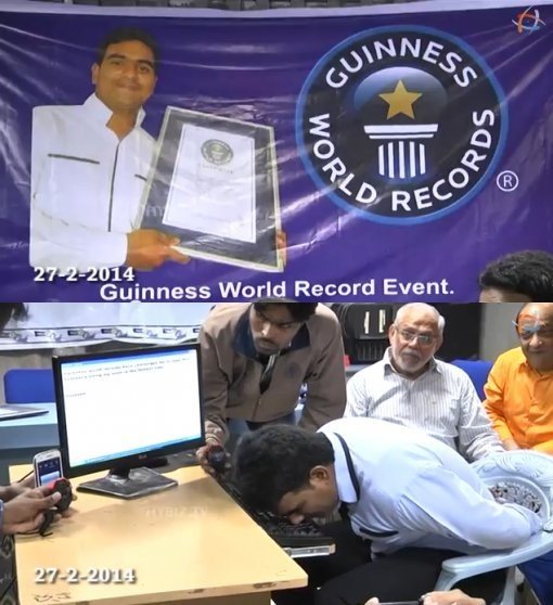 인도의 쿠르쉬드 후사인(Khurshid Hussein)은 47.44초 만에 103개의 알파벳을 코로 타이핑해 세계 기록을 갱신하며 기네스북에 이름을 올렸다.