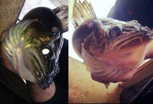 낚시꾼들에게 인기가 높은 ‘월아이’의 한 종류인 이 물고기가 단순 돌연변이인지 아니면 방사능, 독성 물질 등에 따른 오염의 결과인지는 아직까지 미확인 상태다.