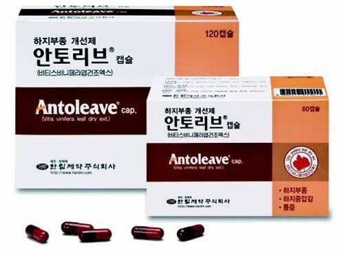 한림제약의 안토리브 캡슐(성분 비티스 비니페라엽 건조엑스)은 정맥 기능 부전에 의한 다리의 부종, 통증, 중압감을 완화시켜주는 일반의약품이다. 정맥 기능 부전 증상이 발생하면 다리가 붓거나 아프고 피곤함이 느껴지는 무거운 증상이 나타나고 밤에 쥐가 나타나기도 한다. 이를 방치할 경우 하지 정맥류, 중증 습진, 다리 궤양과 같은 심각한 질병이 발생할 수 있다. 초기에 적절한 조치를 취하지 않으면 치료가 어려워질 수 있으며 수술을 해야 되는 경우도 발생한다.
