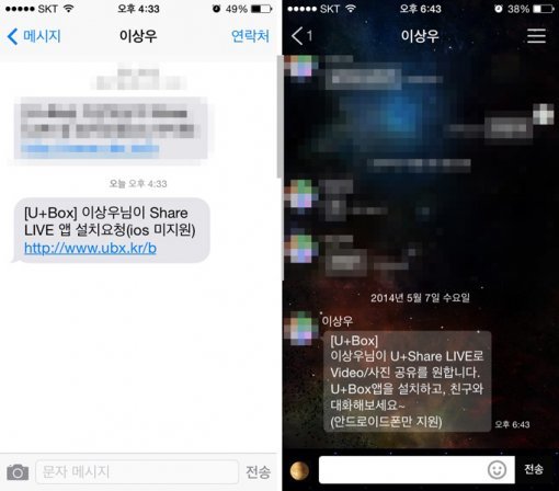 만약 친구 목록에 원하는 상대방이 없다면, 다시 말해 친구가 U+Share LIVE를 사용하지 않는다면 친구에게 초대 메시지를 보낼 수 있다. 이때 스마트폰 주소록에 있는 친구나 카카오톡 친구를 선택할 수 있으며, 선택한 친구에게는 U+Box 설치 요청 메시지가 전송된다. 참고로 현재 iOS 버전은 지원하지 않는다.