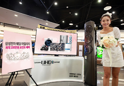 삼성전자가 혼수를 준비하는 예비부부를 위한 ‘삼성전자 웨딩 마일리지’ 행사를 실시한다. 행사에 참여한 고객에게는 이달부터 3개월간 삼성 디지털프라자 혼수전문점에서 구매한 제품 금액과 삼성카드 사용 실적에 따라 삼성 디지털프라자에서 현금처럼 사용할 수 있는 최대 200만원의 포인트를 제공한다.