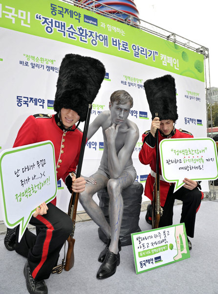 캠페인에 참가한 모델들이 ‘로댕의 생각하는 사람’과 영국 근위병 분장을 하고 연기를 함으로써, 장시간 앉아 있거나 서 있을 때 정맥순환장애 증상이 빈번하게 나타날 수 있다는 점을 흥미롭게 표현했다. 청계천을 지나던 시민들도 동상과 근위병으로 분장한 모델들의 모습을 신기해하며 함께 사진을 찍는 등 큰 관심을 보였다. 또한 시민들은 정맥순환장애에 대한 질환정보책자와 예방에 도움이 되는 체조동작이 그려진 마그네틱도 선물 받고 기뻐했다.