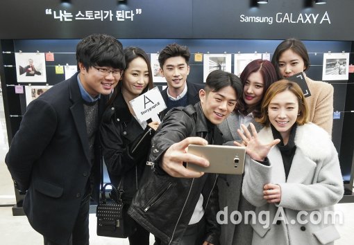 김자인 선수는 실제 암벽 등반하는 모습을 ‘갤럭시 A5’의 500만 화소 고화질 전면 카메라에 담았다. ‘갤럭시 A’ TV광고 모델인 빈지노는 최대 120도의 넓은 화각의 ‘와이드 셀프샷’ 기능으로 광고 촬영 현장을 담은 셀피를 선보였다.