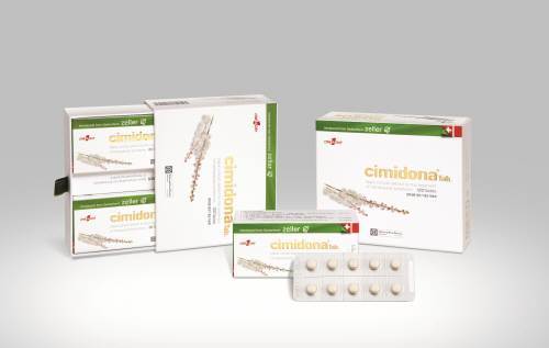 시미도나는 스위스에서 생산되며 여성의 갱년기에 발생할 수 있는 홍조, 발한, 수면장애, 신경과민, 우울증 등의 증상을 개선하는 데 효과적인 제품이다. 이 제품의 주성분은 미나리아재빗과에 속하는 식물인 서양승마 추출물로, 유럽에서 50년 넘게 갱년기 증상 치료에 효과적으로 사용되고 있는 생약 성분이다. 시미도나는 유럽 임상을 통해 갱년기 증상 개선 효과와 안정성을 유럽의약품허가당국(EMA)과 천연물의약품위원회(HMPC)로부터 인정받았다. 스위스에서는 갱년기와 폐경기 증상 치료제로 판매 1위를 기록하고 있다.