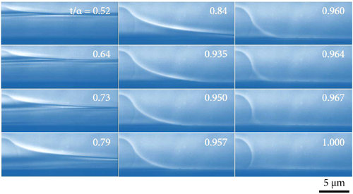 부피가 극도로 작은 초미세 물이 증발하는 과정을 X선 나노영상으로 분할 촬영한 사진. 초미세 물이 증발 할 때는 안쪽에 오목한 모양이 생기면서 내부 압력이 주변 대기압(1기압)보다 낮아져 증발 속도가 점차 느려진다는 사실이 처음으로 확인됐다. 성균관대 제공