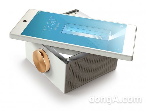 팬택은 ‘IM-100’과 함께 ‘스톤(STONE)’도 선보였다. 스톤은 단순히 스마트폰 액세서리가 아닌 스마트폰과 연동돼 일상생활 속에서 무선충전, 알람, 감성적 무드램프 등 다양한 부가적인 가치 창출을 제공한다.