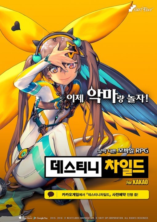 넥스트플로어는 시프트업과 공동으로 개발하는 모바일게임 ‘데스티니 차일드 for Kakao’의 사전등록을 받는다. ‘창세기전 시리즈’와 ‘블레이드&소울’의 아트 디렉터로 유명한 김형태 시프트업 대표가 선보이는 첫 번째 모바일 타이틀. 사전 등록은 출시 전까지 18세 이상 유저라면 누구나 참여 가능하며 신청자 전원에게는 카카오톡 인기 애니메이션 이모티콘 ‘투즈키’를 지급한다. 넥스트플로어는 사전 예약을 기념해 서큐버스 캐릭터 ‘모나’의 한정판 수영복 스킨 및 크리스탈 500개, 오닉스 1만5000개, 10만 골드 등 아이템을 제공한다.