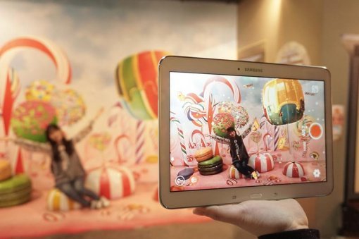 AR을 사용하는 방법은 간단하다. 전용 앱 아트캠(AR:TCAM)을 스마트 기기에 설치한 후 실행하면 카메라 모드가 되는데, 전시된 작품에 비추면 스마트폰 화면에는 실제 환경에 가상 환경이 더해져 새로운 현실을 만들어 낸다. 화산이 폭발하고, 용이 불을 뿜고, 상어가 헤엄치게 되는 것. 이렇게 만들어진 화면은 스마트 기기에서 사진으로 촬영할 수도 있으며, 5초짜리 동영상으로 녹화도 할 수 있다.