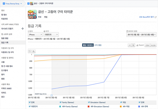 <출처: 앱애니- 시간은금이다 다운로드 기준 등급 기록>