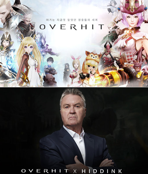 올해 모바일게임 시장서 연이어 히트작을 내놓고 있는 넥슨이 또 다른 기대작 ‘오버히트’를 28일 출시하며 3연 타석 홈런에 도전한다. 오버히트의 대표이미지(위쪽)와 홍보모델로 발탁된 축구감독 거스 히딩크. 사진제공|넥슨