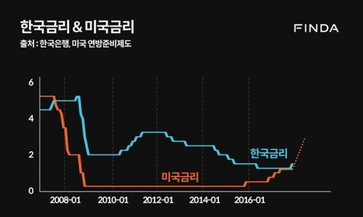투자자들의 돈은 수익률을 쫓아 이동한다. 만약, 미국 금리가 오르는 상황에서 한국이 그대로 금리를 유지한다면 투자자들에게 한국은 상대적인 매력이 떨어지는 시장인 셈이다. 이에 따라 투자 자본이 한국에서 빠져나가는 것이다.