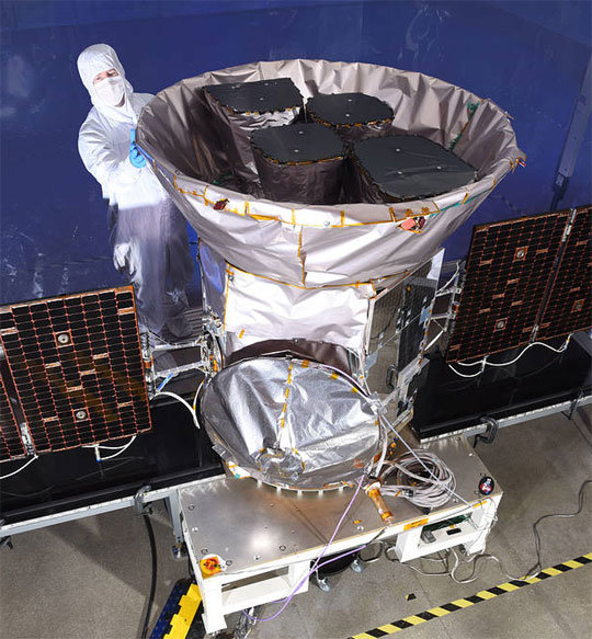 미국항공우주국(NASA) 연구진이 외계행성을 찾기 위해 다음달 16일 발사할 예정인 차세대 우주망원경 ‘테스(TESS)’의 최종 점검을 하고 있다. 테스는 향후 2년간 지구에서 가까운 20만 개의 밝은 별(항성) 주위 행성을 집중 관측한다. 미국항공우주국 제공