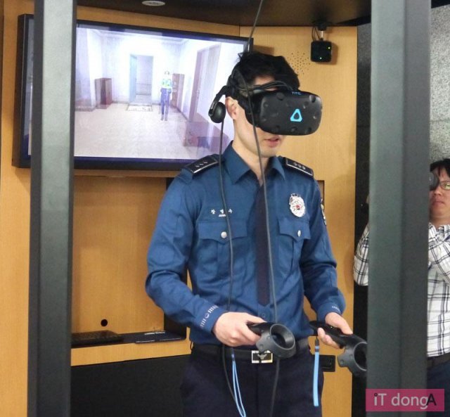 범죄 현장을 가정한 가상현실 공간에서 각종 훈련을 할 수 있다(출처=IT동아) 이날 실시된 시연회에선 성범죄 현장을 가정해 구성된 가상현실 공간에 경찰관이 투입, 각종 증거물 수집 및 피해자에 대한 보호조치, 지원 요청, 가해자 제압 등의 훈련을 진행했다. 이렇게 훈련을 진행하면서 훈련자(경찰관)의 각종 대응이 적절했는지를 평가할 수 있다.
