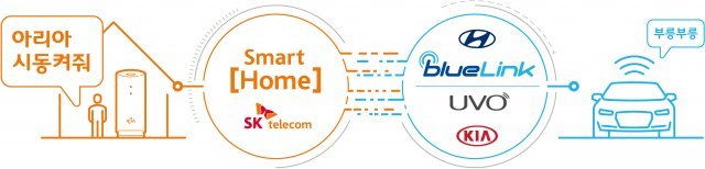 SK텔레콤이 현대자동차 블루링크 및 기아자동차 UVO와 연동되는 차량 제어 서비스 ‘홈2카(Home2Car)’를 24일부터 시작한다.