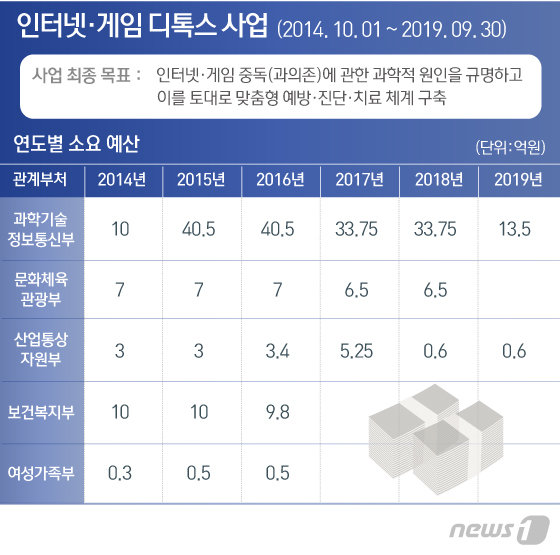 5일 과학기술정보통신부에 따르면 과기정통부·문화체육관광부·산업통상자원부·보건복지부·여성가족부 등 5개 부처는 252억9500만원을 투입해 지난 2014년 10월부터 범부처 R&D ‘인터넷·게임 디톡스 사업’을 진행했다. 올해 9월에 종료되는 이 사업은 ‘뇌과학원천기술개발사업’ 중 ‘실용화연계’ 사업의 일환이다.