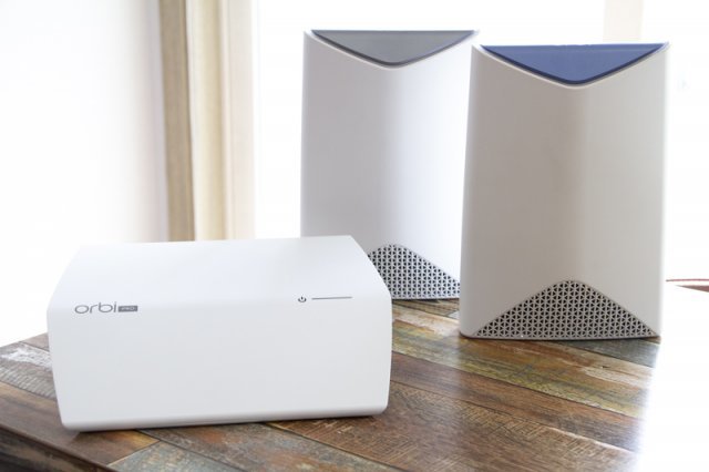 2018년 1월, 넷기어 오르비 프로(Orbi Pro, SRK60)에 대한 리뷰(http://it.donga.com/27271/)를 진행했다. 사진상 우측에 서 있는 게 오르비 프로로, 메인이 되는 라우터, 범위 확장에 쓰이는 새틀라이트가 한 세트다. 라우터에 랜 케이블을 꽂아 작동시킨 다음, 다른 장소에 있는 새틀라이트를 연동시키면 두 기기가 모두 와이파이 신호를 발산한다.
