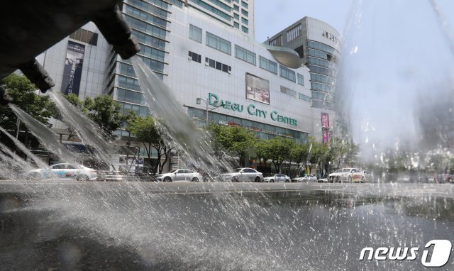 대구와 경북 11개 시·군에 올들어 첫 폭염주의보가 발효된 지난 4일 대구 중구 국채보상로에서 살수차가 물을 뿌리며 뜨거워진 도로를 식히고 있다. 2020.6.4 © News1