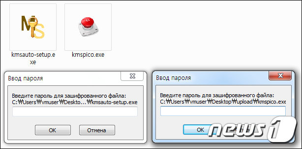 이용자가 해당 악성 실행파일을 열면 비밀번호 입력창이 나타나는데 여기에 공격자가 제공한 비밀번호를 입력하고 OK 버튼을 누르면 불법 정품인증 도구와 ‘비다르’라는 악성코드가 동시에 설치된다.