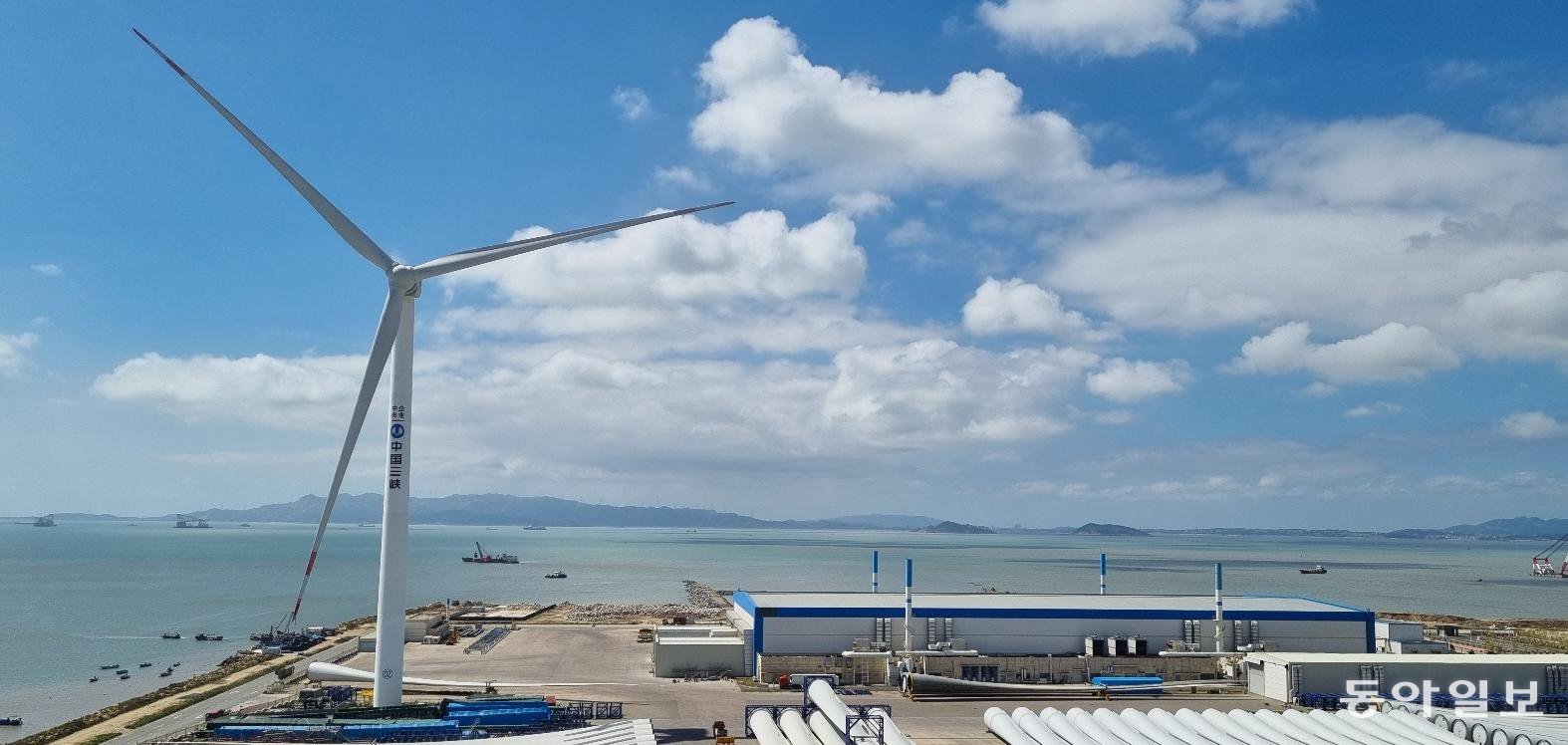 13층 건물 높이인 39m 위치에 서니 해상에 깔려 있는 풍력발전 설비들이 한눈에 들어왔다. 터빈의 날개인 ‘블레이드’가 강한 바람에 쉴 새 없이 돌아갔다. 동시에 단지 곳곳에서 풍력발전 설비에 들어가는 거대한 블레이드, 기둥, 감속기, 발전기 등이 만들어지고 있었다. 푸젠 싼샤 단지는 중국 최초로 해상풍력발전의 전 산업 체인을 아우르는 단지다. 중국 해상풍력의 최전선인 셈이다.