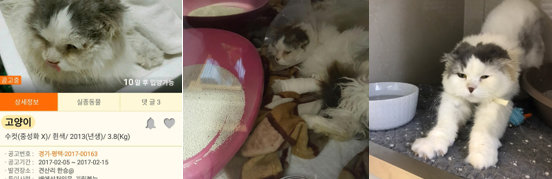포인핸드 공고 당시부터 치료 종결 이후까지의 변화 과정. 사진=금천24시K동물의료센터 제공