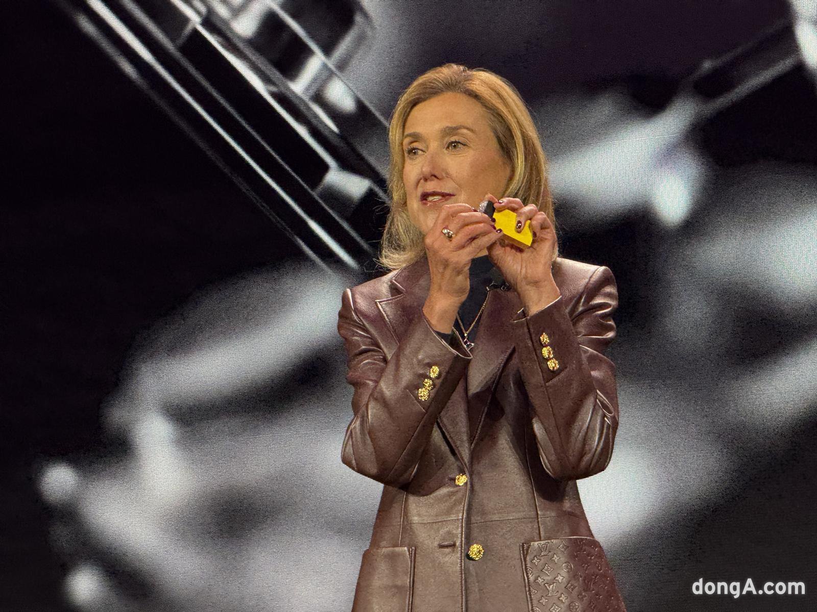 줄리아 골딘 레고 그룹 최고제품·마케팅책임자가 5일(현지시간) 미국 네바다주 라스베이거스 만델레이베이 컨벤션센터에서 사용자 조작 방식에 반응하는 ‘레고 스마트 플레이’를 소개하고 있다. 정진수 기자