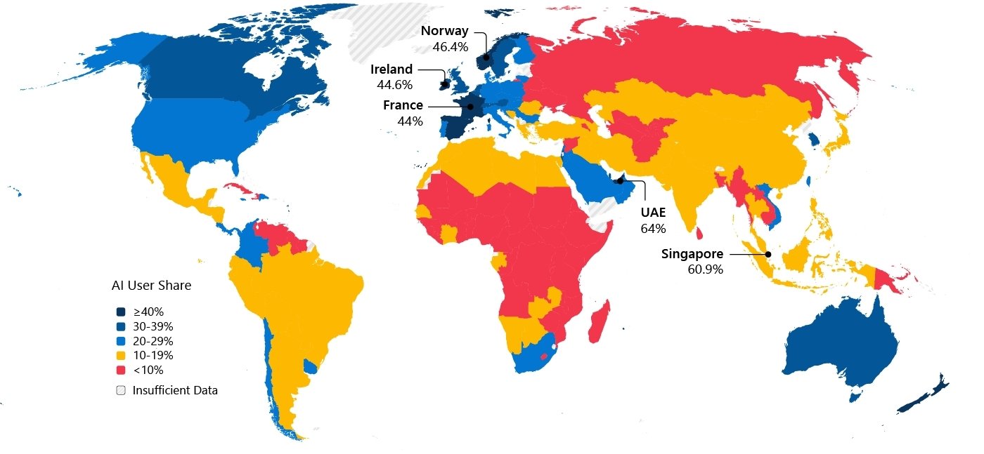 2025년 하반기 경제 수준별 생성형 AI 확산 현황(마이크로소프트 제공)