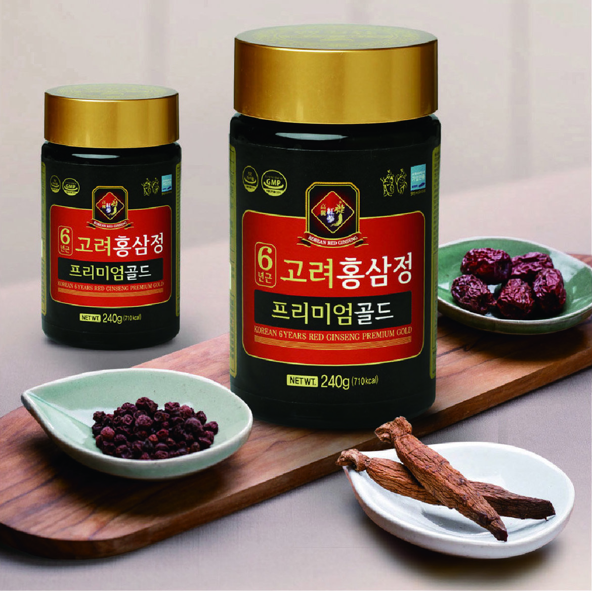 고려6년근 홍삼정 프리미엄골드(건강기능식품 허가번호 제2009-대전청-0007호)는 국내에서 수확한 6년근 인삼만을 엄선해 만들었다. 식품의 생산에서부터 소비자가 섭취하는 최종 단계까지 식품의 안전성과 건전성·품질을 관리하는 시스템인 HACCP(해썹)과 우수 건강기능식품 제조 기준인 GMP 인증 제조 시설을 갖춘 대한홍삼에서 제조해 안심하고 복용할 수 있다. 진세노사이드 Rg1, Rb1, Rg3의 합이 4㎎/g, 고형분 60% 이상으로 원료 삼 조성 비율은 홍삼근(국산) 70%, 홍미삼(국산) 30%다.