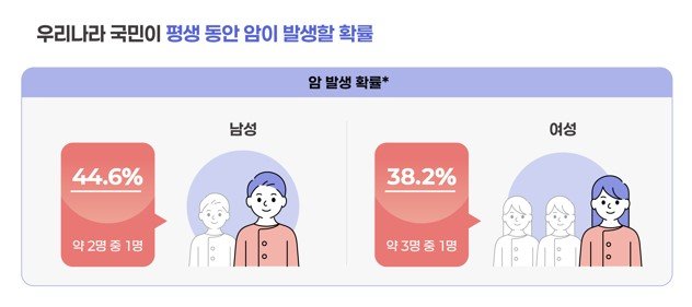 평생 암 걸릴 확률 남자 44.6%, 여자는 38.2%