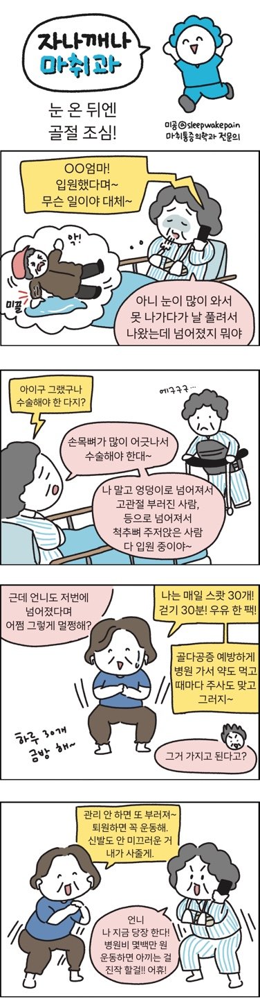 [만화 그리는 의사들]〈392〉눈 온 뒤엔 골절 조심!