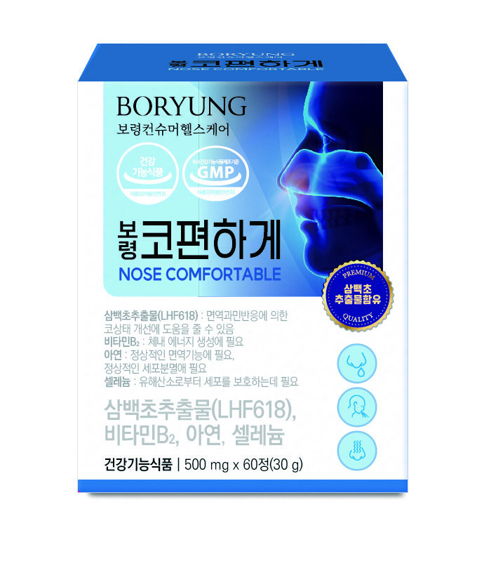 시도 때도 없는 재채기, 주르륵 흐르는 콧물, 답답한 코막힘으로 불편하다면 지금 바로 코 건강관리를 시작할 때다. 보령컨슈머헬스케어에서는 삼백초추출물(LHF618)을 함유한 개별인정형 코 건강기능식품 ‘보령 코편하게’를 출시했다. 면역 과민 반응에 의한 코 상태 개선에 도움을 줄 수 있는 LHF618을 주원료로 했으며 남녀노소 쉽게 섭취할 수 있는 0.5g의 소형 정제로 목 넘김도 편하다. △면역 과민 반응에 의한 재채기를 줄이고 싶은 사람 △콧물이 의지와 상관없이 자주 흐르는 사람 △막히고 답답한 코 불편함으로 잠을 설치는 사람 △코막힘 개선이 필요한 사람 △면역 과민 반응으로 코 상태 개선에 도움이 필요한 사람에게 권한다. 보령컨슈머헬스케어에서는 3개월분 구매 고객에게 2개월분을 추가로 증정, 총 5개월분을 제공하는 특별 행사를 진행 중이다.