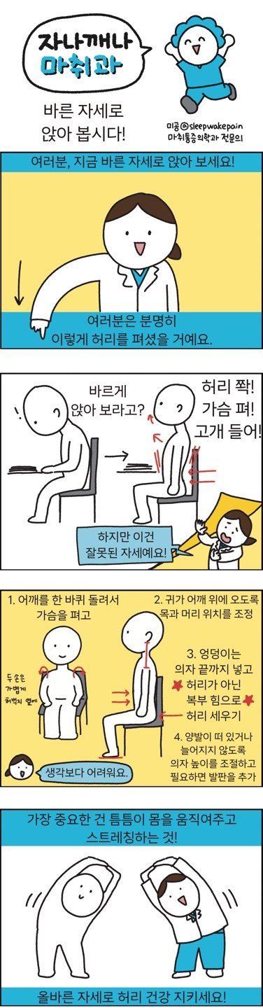 [만화 그리는 의사들]〈396〉바른 자세로 앉아 봅시다!