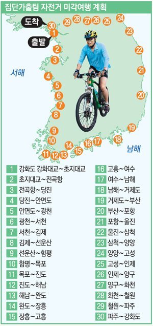 강화도에서 시작해 서해안, 남해안을 돌고, 동해안을 거쳐 강원도 고성까지 올라간 뒤 인제, 양구, 철원, 파주의 내륙 루트를 달려 다시 강화도로 돌아온다는 계획이다.