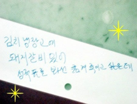 ‘성적표를 본 후 엄마’라는 제목의 사진에는 종이에 “김치 냉장고에 돼지갈비 있어. 성적표를 봐선 굶겨 죽이고 싶은데”라고 적혀있다.