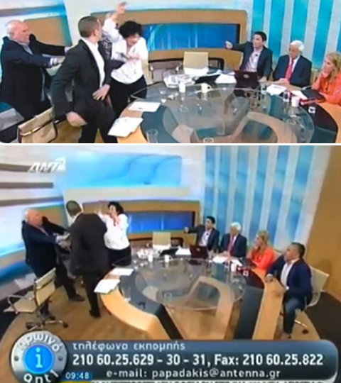영국 데일리메일의 7일(현지시간) 보도에 따르면, 그리스 2차 총선을 앞두고 열린 생방송 TV 토론회에서 고성과 주먹이 오가는 상황이 발생했다.