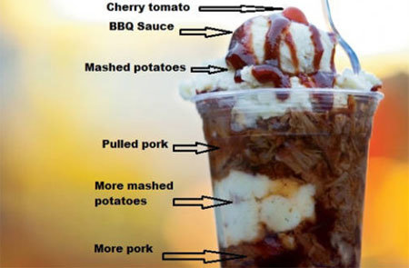 공개된 ‘돼지고기 아이스크림’은 ‘BBQ 선데’로 불리는 아이스크림으로, 플라스틱 컵에 돼지고기와 으깬 감자가 들어있다. 특히 위 부분에 바비큐 소스를 뿌려 아이스크림 선데와 같은 모양을 냈다.