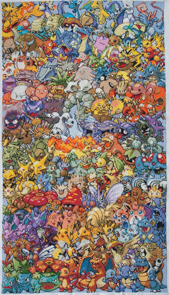 최근 각종 해외 온라인 커뮤니티를 통해 공개된 포켓몬 십자수에는 피카추, 라이추, 파이리, 꼬부기 등 1세대 포켓몬스터 151마리가 총망라되어 있다.