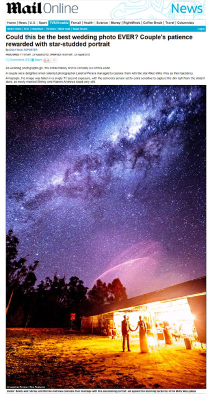 보도에 따르면 해당 사진은 호주 멜버른의 웨딩 전문 사진작가 락샬 페레라가 촬영한 것으로 사진작가와 신혼부부의 인내심을 통해 완성됐다.