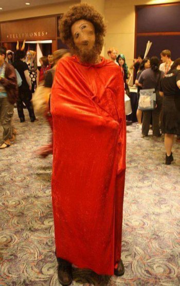 공개된 '역사상 최고의 코스프레' 사진에는 한 사람이 등장한다. 그 사람은 붉은 색 천을 두르고 알 수 없는 마스크를 쓴 채 포즈를 취하고 있다.