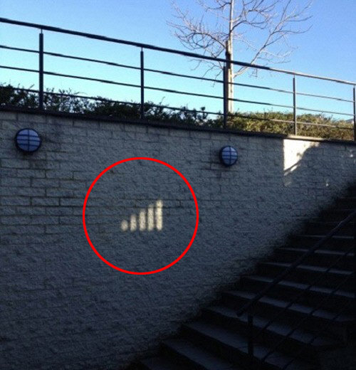 공개된 사진에는 그늘로 덮인 벽에 난간 틈새로 비친 빛의 모양이 마치 무선 인터넷 혹은 전화 수신범위를 나타내는 디자인으로 보여 눈길을 끈다.