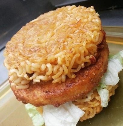 롯데리아의 신제품 라면버거가 출시됐다.