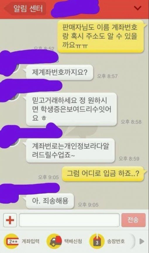 계좌번호를 조심스레 묻는 구매자. 판매자는 개인정보를 이유로 알려주지 않는데…
