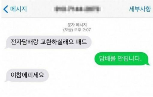 현금구매가 아닌 물물교환을 요구하는 구매자. 판매자가 비흡연자라고 말하자?