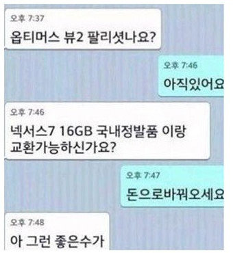 역시 물물교환을 원하는 구매자. 판매자의 우문현답