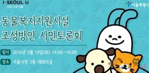 서울시는 종합적인 동물보호를 기능을 수행할 동물복지지원시설의 필요성과 조성방향에 대한 의견 수렴을 위해 시민토론회를 10일 시청 대회의실에서 개최한다.