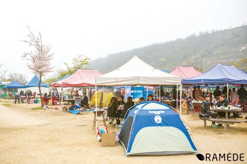 차들로 막히는 가양대교를 지나니 어느덧 다채로운 색깔의 텐트가 하나둘, 눈에 들어온다. 마치 교외의 강변 을 연상시키는 이곳은 바로 난지 캠핑장이다. 2002년 처음 개장한 이곳은 주말마다 캠핑객들로 문전성시를 이루는 도심 속 아웃도어 명소가 됐다.