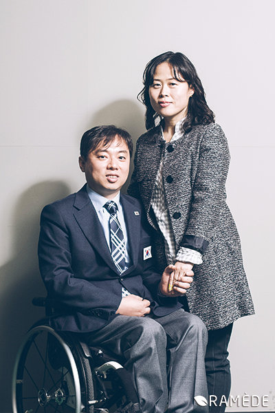 올림픽보다 멜로드라마에 빠지다 4월 20일은 장애인의 날이다. 그래서 19일, 박정우 씨는 국제 장애인기능올림픽 선수단의 일원이자 금메달리스트로 청와대에서 박근혜 대통령과의 오찬에 참여하게 되었다. 에디터는 약속장소로 이동하기 전에 이미 웹상의 기사들을 통해 박정우 씨가 박 대통령 바로 옆에서 식사하는 모습을 확인할 수 있었다. 아내 윤영분 씨는 남편 박정우 씨가 연락도 없이 약속 시간까지 오지 않는다며 초조해했다. 그런 윤 씨에게 “괜찮다”며 함께 카페에 들어가 커피를 마셨다. 편한 이야기를 나누며 긴장을 풀었다. 10년을 넘게 살아도 항상 전화하고 남에게 폐를 절대 끼치지 않는 사람이라고 말하는 윤 씨의 모습이 진실해 보였다. 윤 씨는 쾌활하고 시원시원한 성격을 가지고 있었지만, 섬세하고 감수성이 뛰어난 사람이었다. “남편이 18살 때, 병이 찾아왔어요. 사고도 아니고 자고 일어나니까 몸이 아프기 시작한 거죠. 당시 어머님이 시어머니의 간호를 하느라 신경을 쓰지 못하시다가 뒤늦게 심각한 병임을 아시게 된 거예요. 양방, 한방에 굿판까지, 할 수 있는 모든 것을 다 해보았지만, 소용이 없었대요. 이미 뼈 마디마디에 염증이 생겨 관절이 녹아내리는, 죽음보다 더한 아픔을 견디며 누워서 죽을 날만 기다리는 모습이 되었어요. 그렇게 남편은 고통을 견디면서 ‘제발 다리는 자르지 말아 달라’고 애원했대요. 결국, 무릎을 잘라 인공관절을 심었고 대퇴부까지 병마가 침투해 오른쪽 고관절까지 인공관절로 치환해야 했어요.” - 윤 씨