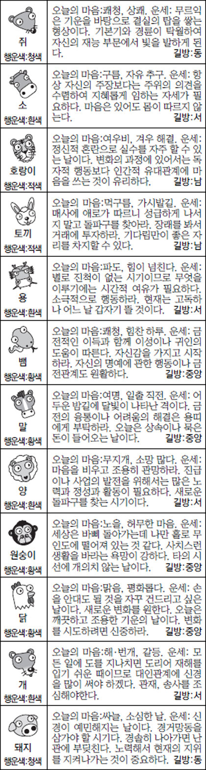 [스포츠동아 오늘의 운세] 2016년 7월 21일 목요일 (음력 6월 18일)