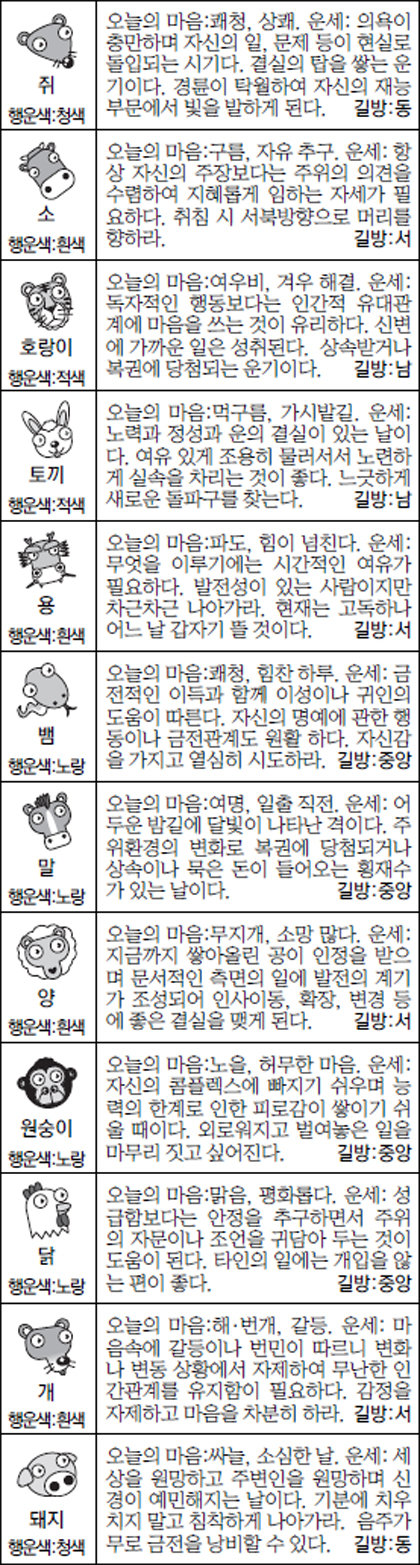 [스포츠동아 오늘의 운세] 2016년 8월 2일 화요일 (음력 6월 30일)