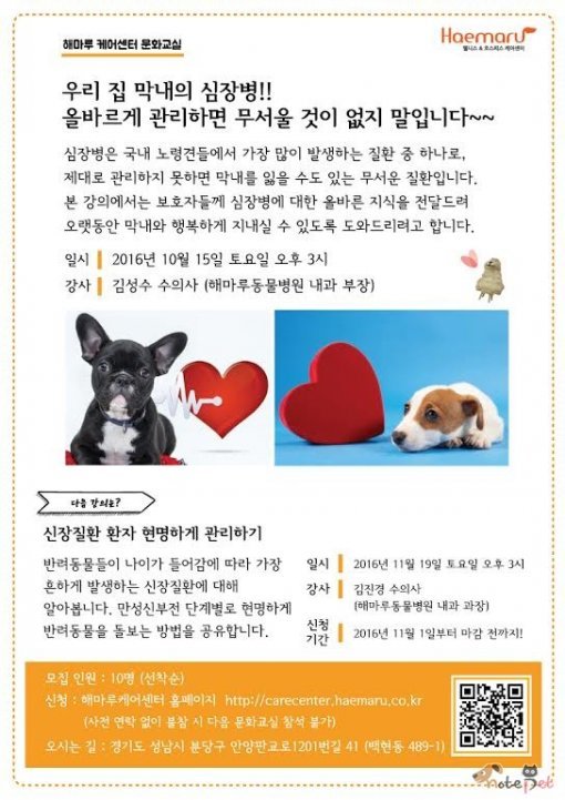경기도 분당 해마루케어센터가 심장병을 주제로 10월 문화교실을 연다.