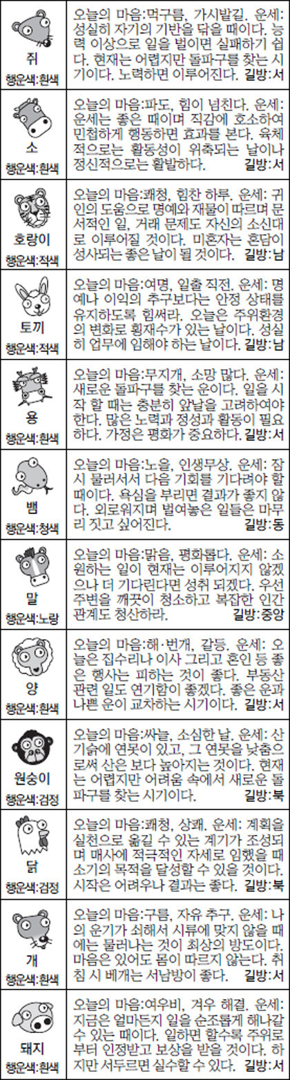 [스포츠동아 오늘의 운세] 2016년 10월 10일 월요일 (음력 9월 10일)